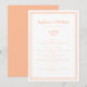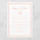 Enkel, minimalistisk och elegant bröllopsmeny med en modern design med en dubbel ramkant i modern persikofärg på en krispig vit bakgrund. Traditionell formulering ger tidlös men modern förfining. Anpassa bröllopsdesignen med dina meny detaljer i persikofärgad bokstav och script. Baksidan av kortet matchar i enfärgad persika.