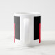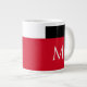 Den här snyggten mugg har ett rött, svart och vitt färg-block mönster med ett inledande monogram i vit text. Det är en underbar gåva eller ett tillägg till din samling i mugg. Anpassa med önskad initial.