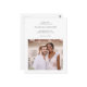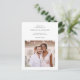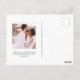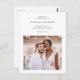 Två svarta och vita vykort med foto i bröllop spara datum är enkla och minimalistiska och har klassisk typografi och en fotoframsida av kortet, med information om bröllop webbplats, ett andra foto och briden och groomens returadress på baksidan av vykortet för datummeddelande i bröllop.