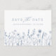 Enkel minimalistisk elegant dammig blå periwinkle modern 'spara datum'-postkort med vilda blommor. Hitta fler matchande designer och variationer i min butik. Kontakta mig gärna för ytterligare anpassning eller matchande artiklar.
