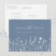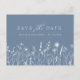 Enkel minimalistisk elegant dammig blå blåvinblomma modern 'save the date'-postkort med vilda blommor. Hitta fler matchande designs och variationer i min butik. Kontakta mig gärna för ytterligare anpassning eller matchande artiklar.