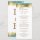 Denna enkla minimalistiska eleganta design visar upp en vit bakgrund med akvablå övertoning utförd i akvarell och guldfolieffekt kant. Ljus himmelblå eller akvablå pastell tema ger en enkel men ändå elegant look till designen. Den guldfolie-strukturen ger en mer samtida klassisk look till denna fantastiska design. Den intrikata designen passar bra till en höst-, sommar- och vårbröllop. Finns tillgänglig som en stor bunt combo med bröllopsmaterial. Moderna handskrivna kalligrafifonts används i guldbokstäver. Se kollektionen för att lägga till fler matchande föremål.