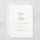 Denna enkla minimalist|guld bröllop spara datum är perfekt för ett elegant bröllop. Den klassiska designen har attraktiv guld och vit typografi med ett modernt, minimalt utseende. QSD114