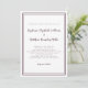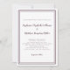 Elegant och trendig bröllopsinbjudan med en enkel modern minimalistisk design med en dubbel ramkant i lila på en krispig vit bakgrund. Traditionell ordalydelse ger tidlös men modern förfining. Personifiera bröllopsdesignen med dina detaljer i lila cassis-tryck och typsnitt. Baksidan av kortet matchar i enfärgat cassis.