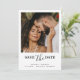 Detta enkla och eleganta bröllopskort för att spara datumet har ditt favoritfoto på framsidan, med en modern handskriven stil och fet serif-text. Lägg till din ytterligare information på baksidan av kortet, inklusive din bröllopswebbplats. Lätt att anpassa. Grattis!