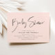 Den här enkla och elegant babyduschinbjudan innehåller handskrivet skript med händelseinformation nedan.