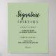 Denna enkla minimalistiska|sage namnteckning poster av cocktails är perfekt för ett elegant bröllop. Den klassiska designen har en strålande sage med mörk grått-typografi och ett modernt, minimalt utseende. QSD116