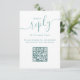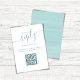 Den här designen har ett enkelt, minimalistiskt svar på OSA, elegant, bröllop-svar, en klassisk och modern QR-kod, med ett vänligt svar, och en enkel strandtropisk turkosfärg