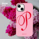 Skapa din egen snyggt, elegant iphone case och skydda din mobila i stil! Den här eleganten fodral har en snyggt med ett stort calligraphy-skript av stil som initieras med rött på rosa bakgrund och namn vid grund i ett enkelt formaterat teckensnitt. Välj från tunn eller tuff stil i iphone case och din modell iPhone enkelt i listrutorna.