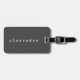 Den här snyggt anpassningsbar bagagetaggen har en enkel, minimalistisk utformning av ditt namn i ett skrivmaskinsteckensnitt i vitt på contemporaryns svarta bakgrund. Underbar presentidé!