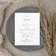 Denna enkla minimalistiska svart och vita bröllopsmeny är elegant och mångsidig. Den har en traditionell design med minimal typografi och parmonogram. Klicka på redigeringsknappen för att anpassa denna design.