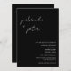 Upplev elegans med vår enkla, minimalistiska svartvita, moderna bröllopsinbjudan med en elegant svart bakgrund. Höj din stationära chic med den här designen, perfekt för det moderna par. Den tidslösa estetiska och förfinade informationen anger tonen för snyggten firande. Anpassa sömlöst för att matcha temat. Gör en påstående med den här svarta och vita skönheten.