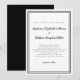 Elegant och trendig bröllopsinbjudan med en enkel modern minimalistisk design med en dubbel ramkant i svart på en krispig vit bakgrund. Traditionell formulering ger tidlös men modern förfining. Personifiera bröllopsdesignen med dina detaljer i chic svart bokstav och skrift. Baksidan av kortet matchar i solidt svart.