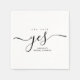 Fira kärlek i stil med dessa chic, minimalistiska blöjor av svart och vit möhippa. Med eleganten "Hon sa ja" i det moderna skript, ger dessa blöjor en aning sofistikering till alla möhippor, förlovningsfester eller bröllop-evenemang. Den rena, slående designen är perfekt för par som värdesätter underskattad elegans och tidlös dekoration. För både intim och stormig firande kompletterar dessa blöjor på ett utmärkt sätt alla bröllop-teman och förbättrar atmosfären med sin eleganta, svarta och vita estetik. Anpassa dem för en speciell beröring i extra på din stora dag.
