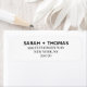 Dessa enkla minimalistiska typografi returadressetiketter är perfekta för ett enkelt bröllop.