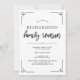 Dessa moderna familjeåterföreningsinbjudningar har trendigets svarta typografi, med all information om återförening på vit bakgrund. Svarta och vita rand dekorerar baksidan.