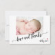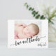 Trendigets minimalistiska typografi manuschen babydusch kärlek och tack vare att du har personlig om kortmallen med nyfödda baby-foto och din text.