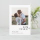 Minimalistisk chic-typografi av trendig, skript svart och vitt bröllop spara datum-kort med anpassningsbar-foto och text. ++++++++++ Lämpligt för en modern rostertid oavsett säsong bröllop.
