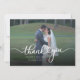 Ett bra och genomtänkt sätt att tacka dina vänner, familj och kollegor som hedrade dig med sin närvaro på din bröllpsdag med detta moderna fototackkort med handskrivna "tack" och ett kärlekshjärta.