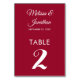 Enkel, modern brottsling Red elegant bröllop Bordsnummer