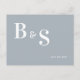 Enkel stor monogram bröllop Spara datum. Webbplats. Dammig blå. QR-kod. Modernt teckensnitt. Postkort.