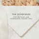 Minimalistiskt stämpeldesign med ditt familjenamn och adress eller kontaktinformation i ett modernt sans-serif typsnitt i art deco-stil. Perfekt för personlig eller professionell användning. Klicka på "Personifiera" för att ändra texten. Besök vår butik för fler designs!