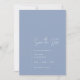 Ett enkelt uttalande från bröllop spara datum i söt dammiga blå, med rubriken "spara datumet" i vitt, modernt, handskrivet teckensnitt. På motsatt sida lägger du till din foto- och bröllop-webbplats, med QR-kod.
