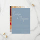 Ange tonen för bröllop med det här vackra moderna minneskortet med handskrivet skript i Dusty Blue och fotot på baksidan.