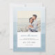 Den här vackra och dammiga eleganten sparar datumet med en vattenfärgsmålad ombre-bakgrund med ett vitt gräns och ett foto för anpassning. Baksidan av inbjudan har samma blå vattenfärgsbakgrund. Detta är en del av Watercolor Ombre-samlingen som kan visas genom att klicka på samlingslänken ovan.