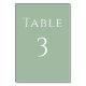 Anpassa det här enkla, moderna skripttecknet för firande.. bordsnumret för. Bakgrunden till eukalyptus eller sage grönt matchar min andra monogrambaserade blommigt vapensköld bröllop bord dekorator. Snyggtens vita typografi finns på båda sidor av detta bord-tecken. Lägg till bordsnumret för elegant bröllop-skyltar för bordsnummer av mottagning.