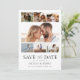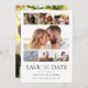 Skapa dina egna bröllop spara datum-kort med dina favoritfoton. Lägg till namn och information i en elegant med minimalistisk typografi bredvid ett enkelt fotosorstödraster. Ytterligare sidfoto på baksidan av fullt.