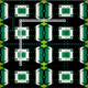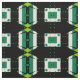 Sömlös dekorativ geometrisk mönster med geometriska former i grönt, svart och vitt.