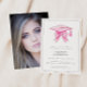 Enkel Modern fotoinbjudan - den här enkla, moderna inbjudan innehåller en rosa studentmössa med en coquette-båge och en fullt utfallsfoto av student på baksidan. Vår inbjudan gör det så enkelt för dig att anpassa din inbjudan.
