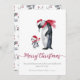 Den här eleganten har julkortet söta vattenfärgspenguiner på vit bakgrund. Baksidan har grönt löv och röda bär mönster. Perfekt för att skicka hälsning till vänner och familj den här julhelgen. Du kan enkelt ändra bakgrund färg genom att klicka på Redigera design och sedan på Bakgrund.