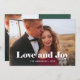 Det här enkla och snyggt helgdag-fotokortet säger "Kärlek and Joy" i fetstil, vit elegant, modern typografi med ditt favoritfoto i din familj på kortets framsida. Ditt personliga budskap om helgdag kan gå på baksidan, med en minimalistisk grönt och vit design.