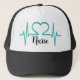 Turkos Modern Hjärtfrekvens EKG Linje Medicinsk Sjuksköterska Truckerhatt. Turkos hjärtfrekvens EKG hjärtslagstryck, som en present till examen från sjuksköterskeutbildning eller medicinsk utbildning eller bara till din favorit sjuksköterska! Inte bara kan du ändra typsnittsfärgerna (och texten naturligtvis), men du kan också ändra bakgrundsfärgerna som kommer att ändra färgen på hjärtslaglinjen! Du kan matcha det med din sjuksköterskas favoritfärg eller skolans färger om du vill för examen.