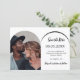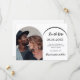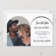 Ett foto Spara datumkortet för bröllop. På framsidan: Lägg till ett eget lodrät storlekt foto i bågfotot ram. En vit chic, svart text. Mallar för namn och datum. Namn och texten: Spara datumet är skrivna med ett modernt handskript i stil. Tillbaka: Du kan lägga till mer text om du vill. Gå in i designen verktyg och lägg till på baksidan av lagrar.
