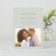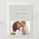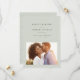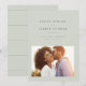Med smakfullt modern men enkel typografi är detta spara-datum med ett foto det perfekta sättet att tillkännage din förlovning och kommande bröllop. Den klassiska ljusa salvia gröna färgen fungerar med alla stilar av bröllop från formella till avslappnade. Baksidan har en enkel rand. Färgen kan ändras genom att klicka på "anpassa ytterligare".