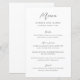 Elegant bröllopsmeny med en enkel design med ett modernt sans-serif-teckensnitt och ett elegant script-teckensnitt.