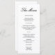 Det här menykortet är designat för att komplettera alla bröllop-teman eller dekortecken och har en ren och minimalistisk layout som är adsorterad med klassisk skripttypografi för ett litet förfiningssteg.