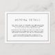 Enkel bröllopsbilaga med en ren design med titeln "Bröllopsdetaljer" i en handskriftsstil och en tunn svart kant, på en vit bakgrund. Denna grundläggande och moderna design är bra för ett minimalistiskt par som har ett avslappnat bröllop. Använd dessa bilagor för att ge vägbeskrivningar och andra viktiga detaljer som dina gäster kan behöva veta, till exempel hotellrum, parkering, skytteltjänst etc.