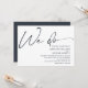 Enkel minimal modern script "vi gör" med solid mörkblå-grå och vildblomma i en vas i vitt på baksidan av inbjudan. Skicka meddelande om du behöver hjälp eller har några speciella önskemål.