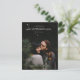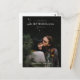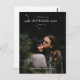 Den här minimalistiska, moderna fotovykortsmallen bröllop spara datum har ett enkelt, rent utseende med namn vid grund i ett skriptteckensnitt. Du kan föredra ett annat teckensnitt stil, skript eller annat, för namn eller en annan del av texten. Du kan också ändra textens storlek och färg. Observera dock att när du redigerar detta kort för att ta med din egen information, är vissa fält, t.ex. datum och bröllop, desamma för både fram och tillbaka, så när du ändrar detta på ena sidan ändras det automatiskt även på den andra sidan. Detta begränsar möjligheten att ta bort viss text eller ändra typsnittet osv. eftersom ändringen träder i kraft för den texten fält på båda sidor av kortet, vilket du kanske inte tänker göra. Namnen kan dock redigeras separat på båda sidor, eftersom varje sida av namn har en egen text fält i redigeringsläget. Se också till att du märker och ändrar informationen om exempelinformationen till din egen returadress, eftersom den är ganska liten och finns nere grund på kortets baksida, som man lätt förbiser! Du kan ta bort linjerna för adressatens information och/eller texten "leverera till" där om du vill ha ett enklare utseende.