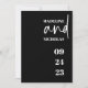 Den här vita på svarta bröllopsinbjudan har ett stort skript "och" med serif namn och ett stort datum. Färg är klassiskt svart och vitt. Detaljerna om bröllop är på baksidan. Se samordna saker i vår butik.
