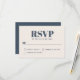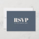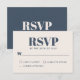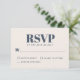 Med en känsla av modern minimalistisk enkelhet presenteras detta stilrena enkla bröllopssvarskort i det populära färgvalet - marinblått och ljust ecru beige. Framsidan av kortet har en ecru beige bakgrund med marinblå text och baksidan av kortet har en marinblå bakgrund med ecru beige text. Trendig fet typsnitt stavar ut RSVP. Anpassa det obligatoriska svarsdatumet med ditt önskade datum.