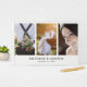 Elegant Modern Anpassningsbar Personlig Enkel monogram Minimal multifoto Bröllop gäst Bok. 3 foton på framsidan och ett större foto på baksidan.