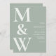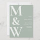 Enkel Modern Monogram Sage Grönt bröllopsinbjudan. Har fet monogramtypografi och minimal grafisk design. Anpassa texten med all information om din speciella dag.
