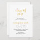 Minimalistiskt studenten-annonskort med enkel och klassisk design med "årsklass" och student namn i ett tjockt guld-tonat skript som ger en vit bakgrund. Ett traditionellt reklamkort med modernt flluft för en flicka student.