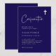 Dessa eleganter, könsuppehåll, mörk blått och vita bekräftelseinbjudningar är enkla och minimalistiska men ändå mycket snyggt på grund av det moderna handskrivna skript och den rena layouten. Det finns också en matchande vit kor.