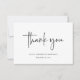 Dessa eleganter, svarta och vita bröllop-tackkort är enkla och minimalistiska men ändå mycket snyggtar på grund av det moderna handskrivna skript som säger "tack" och den rena layouten. Baksidan är tom så att du kan skriva ett personligt meddelande.
